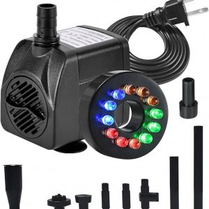 15W 1000L/H Submersible Fountain Water Pump with 12 Colorful LED Lights, Mushroom and Blossom Spray Head for Fountain,Pond,Outdoor Water Feature, Statuary Gardens,Aquarium Fish Tank Visit the Yawank Store 4.0 4.0 out of 5 stars