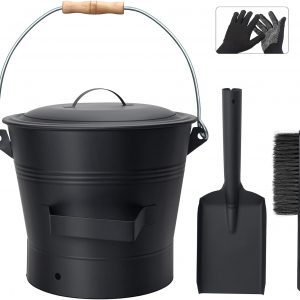 Ash Bucket – 4.75-Gallon Metal Bucket with Lid and Shovel for Fireplace or Firepit Ashes – Heat Resistant Fireplace Tools by Pure Garden (Black) Visit the Pure Garden Store 4.6 4.6 out of 5 stars
