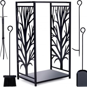 Firewood Rack Fire Log Holder Storage Set with 4 Tools Brush, Shovel, Poker, and Tongs, Easy to Use and Clean, Decorative Fireplace Wood Rack, Great Space Saver for Indoor/Outdoor Visit the WILLOW WEAVE Store 4.6 4.6 out of 5 stars