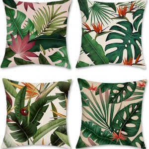 Bonhause Tropical Leaves Throw Pillow Covers 18×18 Set of 4 Green Palm Leaf Monstera Botanical Pillows Case Polyester Linen Cushion Covers for Outdoor Couch Sofa Patio Decor Visit the Bonhause Store 4.6 4.6 out of 5 stars