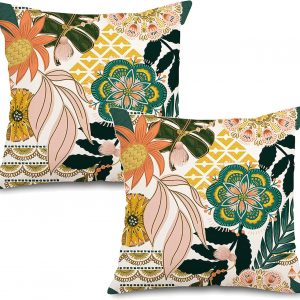 Jartinle Boho Floral Outdoor Pillow Covers 18×18 Waterproof Set of 2 Blooming Flower Leaves Pattern Porch Pillow Covers for Patio Furniture Visit the Jartinle Store 4.7 4.7 out of 5 stars