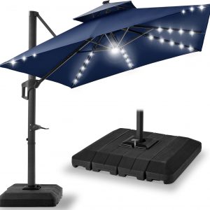 Best Choice Products 10x10ft Cantilever Patio Umbrella w/Base Included, Solar LED Lights 360 Rotation Large Offset Hanging Outdoor Shade for Deck Pool Backyard w/Stand – Navy Blue Visit the Best Choice Products Store 4.3 4.3 out of 5 stars